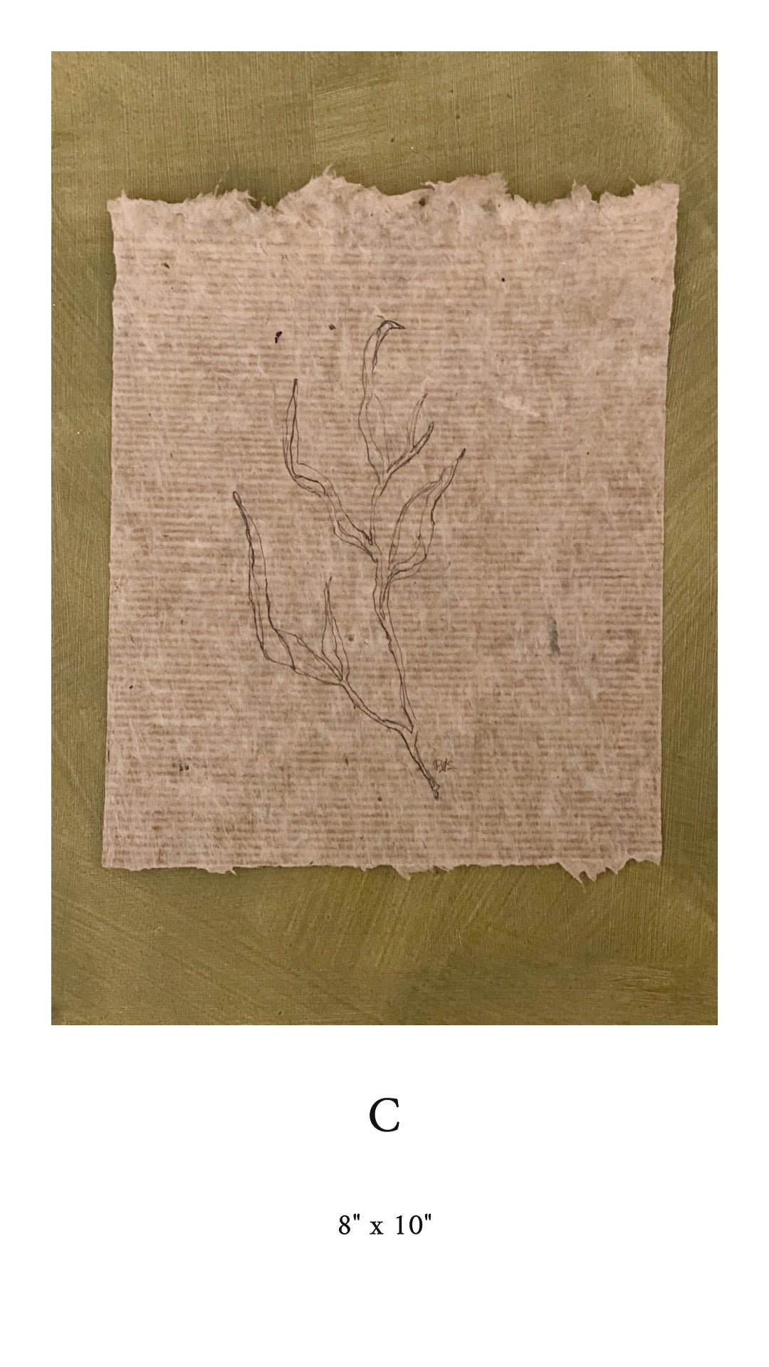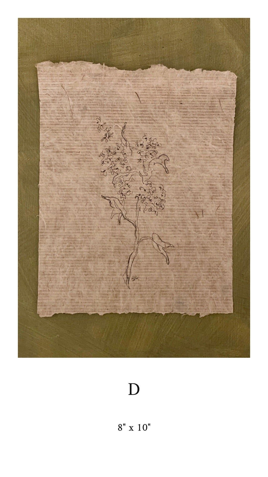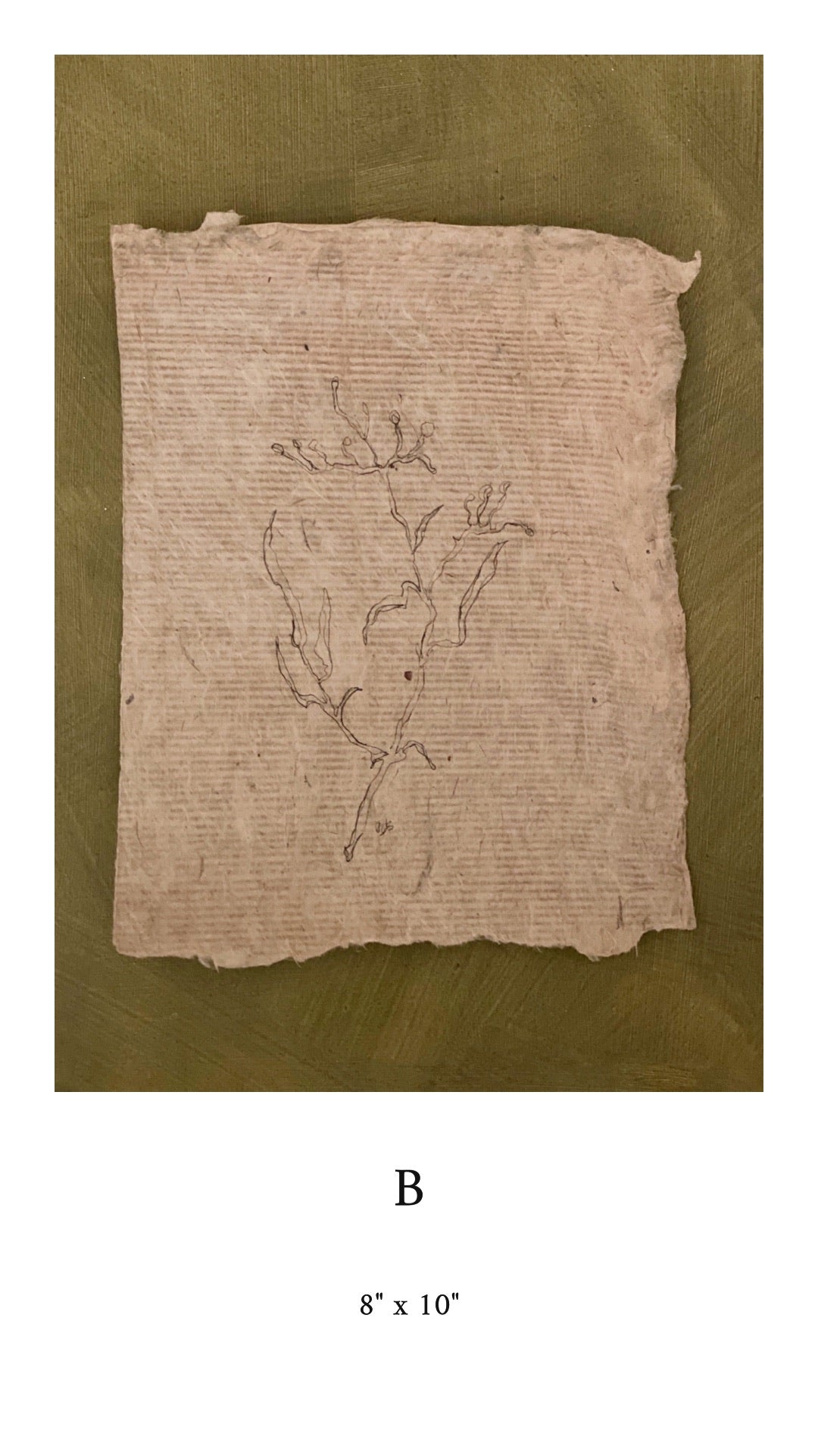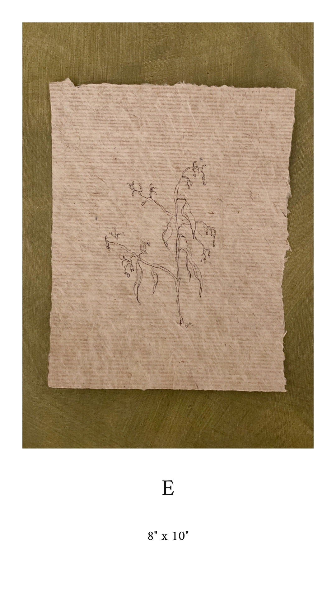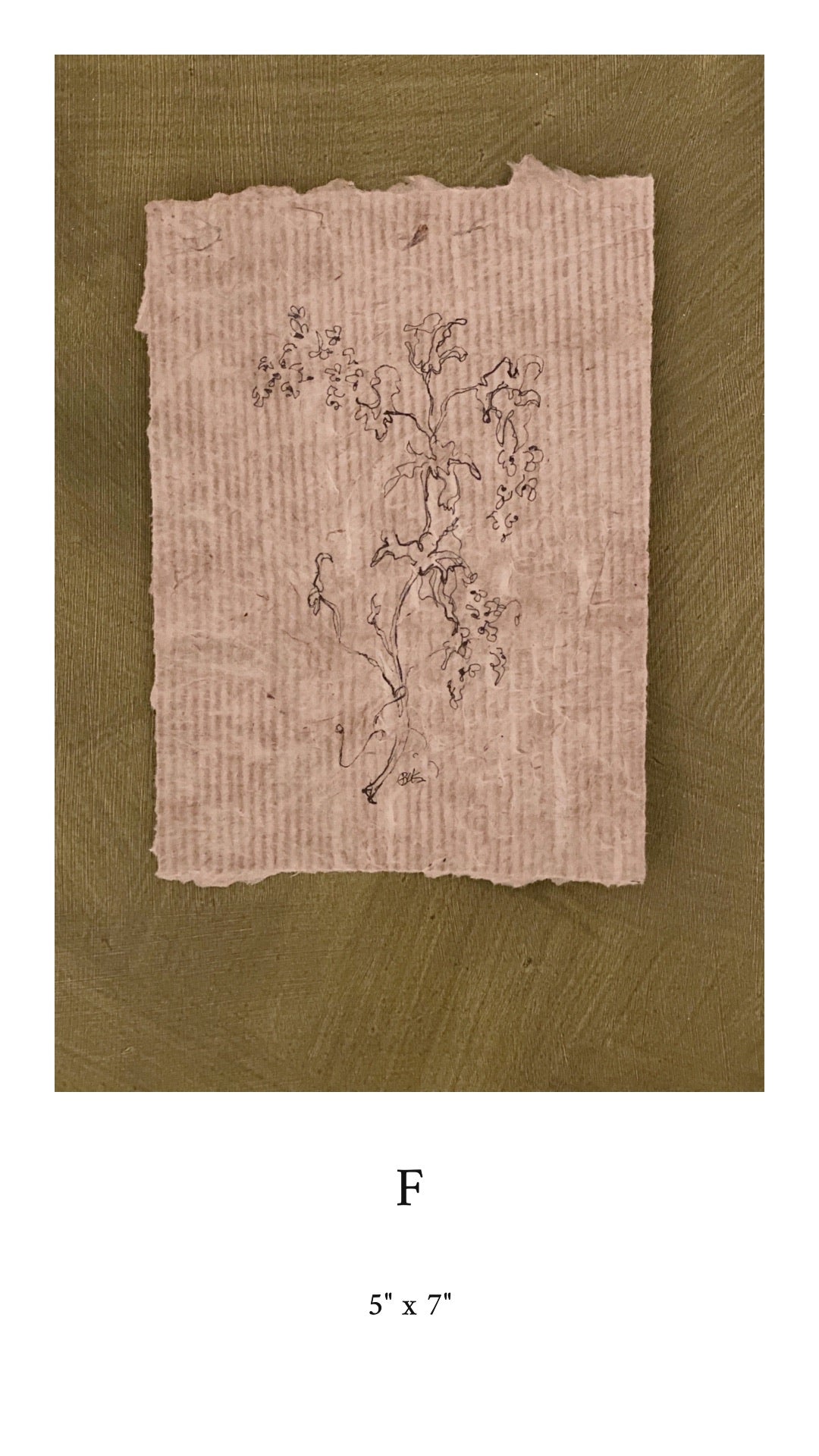 Partially blind ink floral contours on handmade paper. Each piece is given a letter in order to make purchasing easier. The sizes given are an estimate due to the handmade nature of the paper. Each piece contains my initials on the front.