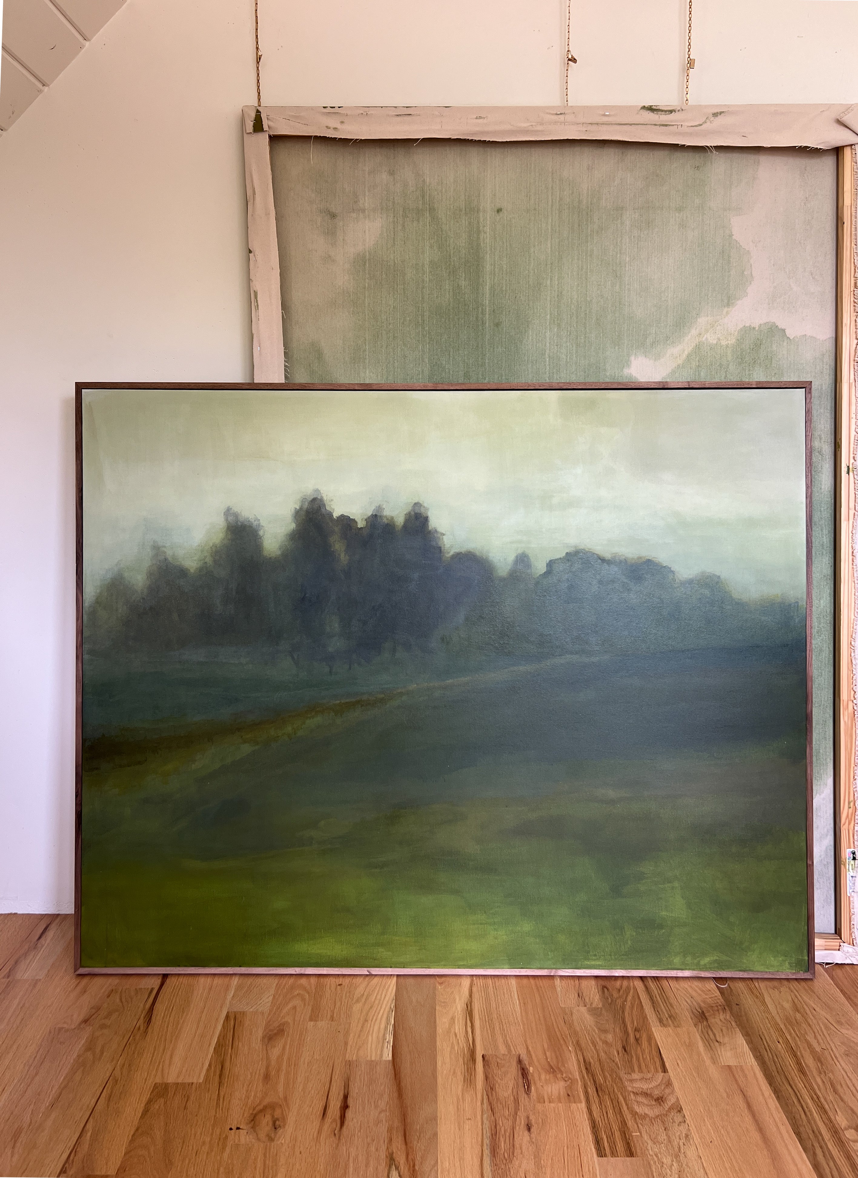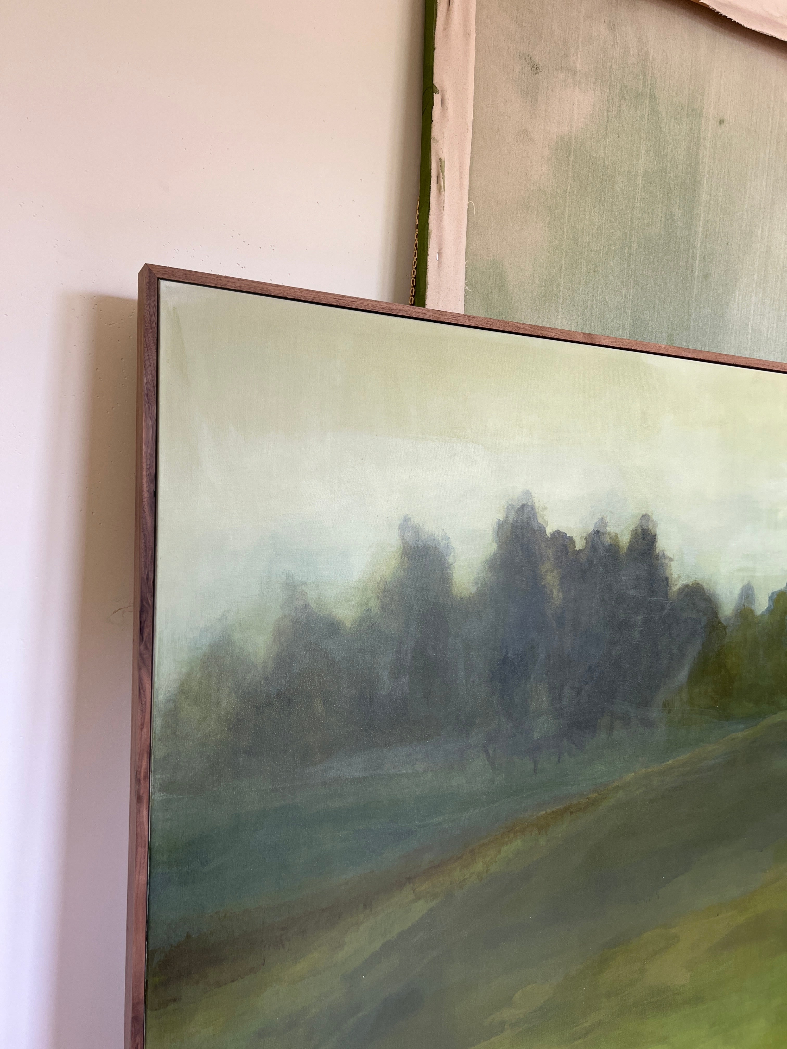 Created with layers and layers of acrylic paint evoking a depth and richness. Beginning with a soft yet moody sky with a misty haze falling on the trees. A stark path leading your eye into the distance. Beautiful deep greens, lots of movement that allow your eye to wonder. A statement heirloom original that you can get lost in. Custom framed in dark walnut. Some images were taken without the custom framing, your original will arrived framed and ready to hang on the wall. Framing and shipping (within the US) included in listed price.