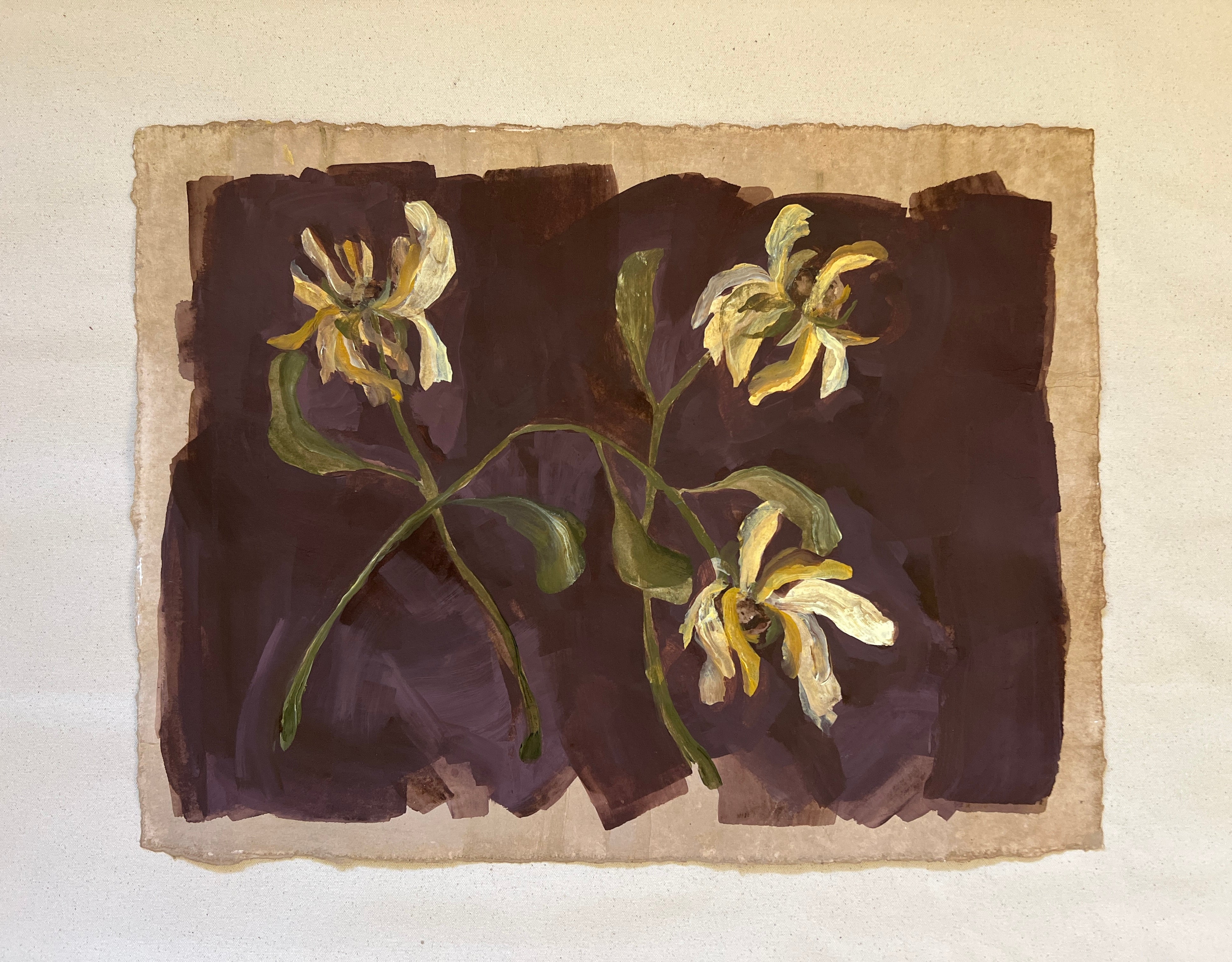 Delicately vibrant originals, created with the idea of capturing each bloom in a dance like state. Full of movement and emotion. Catching the sunflowers as they start to bend. Created on deckled edge paper with thick layers of acrylic paint. Brushstrokes left unblended in order to create depth and movement.
