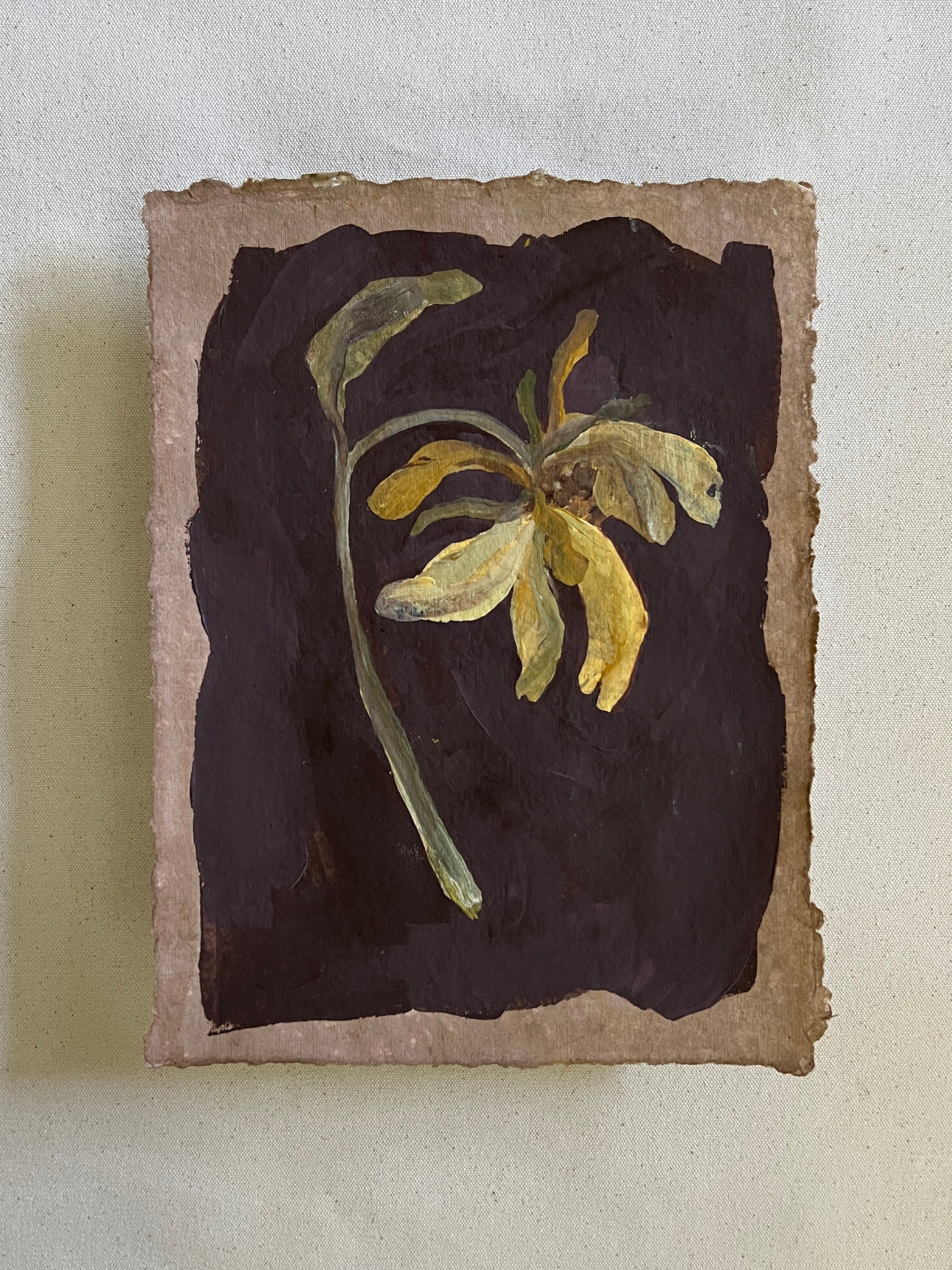Delicately vibrant originals, created with the idea of capturing each bloom in a dance like state. Full of movement and emotion. Catching the sunflowers as they start to bend. Created on deckled edge paper with thick layers of acrylic paint. Brushstrokes left unblended in order to create depth and movement.
